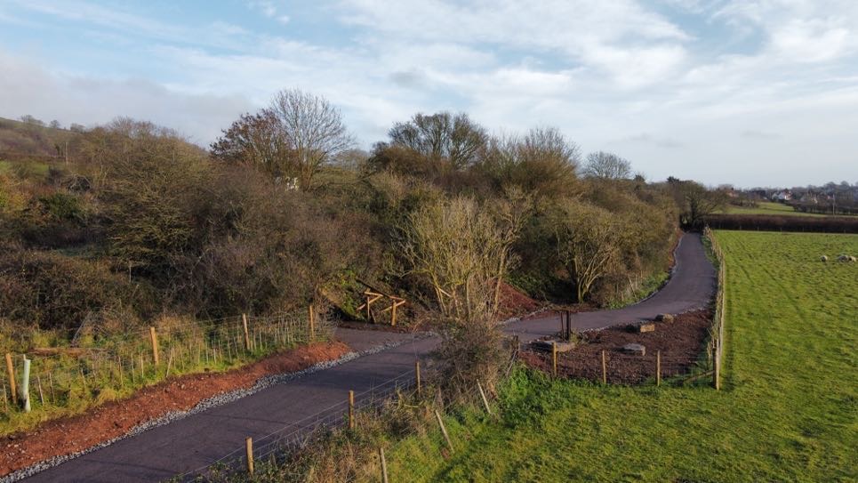 This path has been made possible by kind permission of the local landowners, Mendip District Council’s political and financial commitment to the project, Greenways & Cycleroutes Ltd. for overseeing the design, engineering, and construction, and MP & KM Golding Ltd for laying the path and carrying out all associated earthworks. A huge thank you to all involved.”