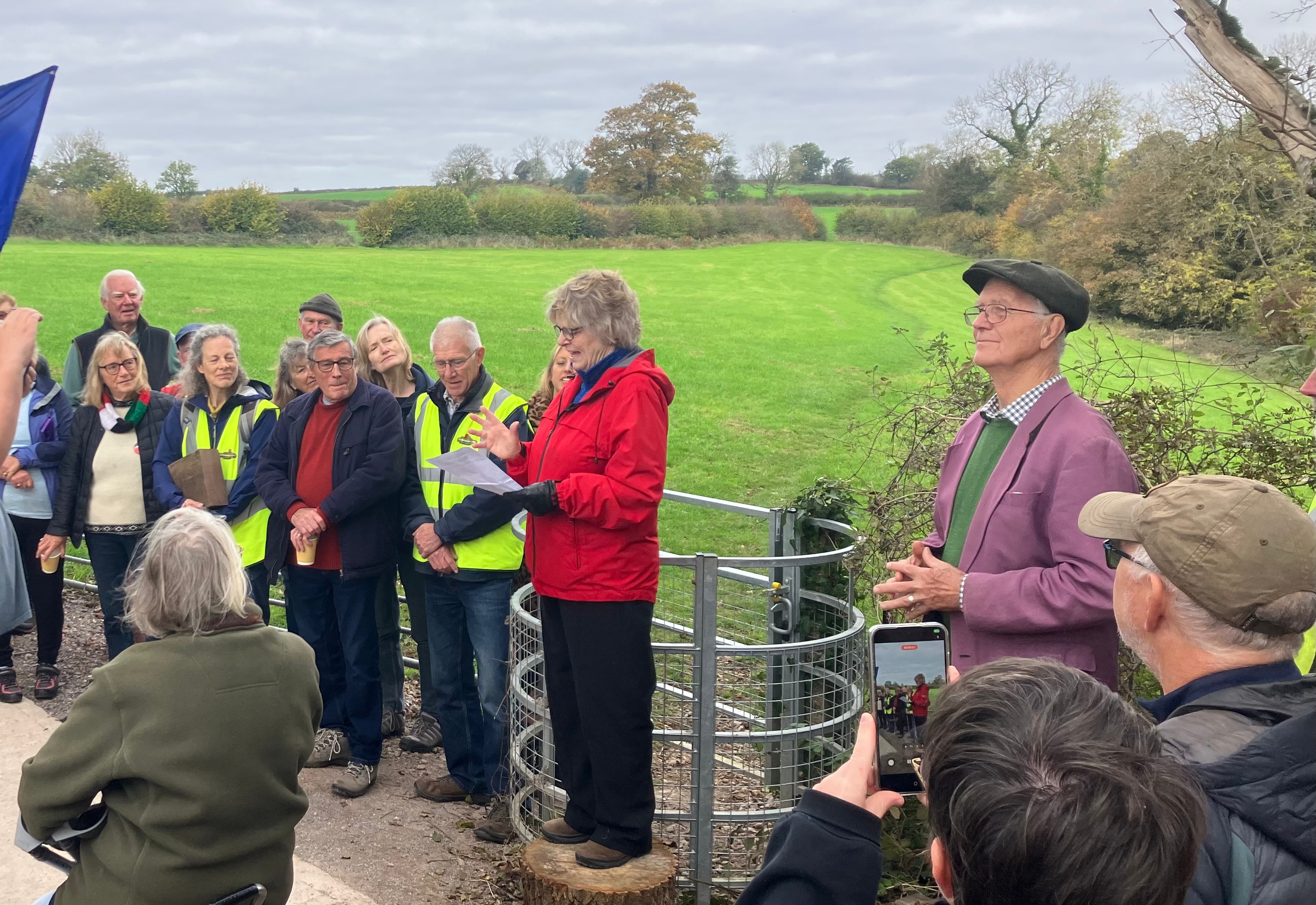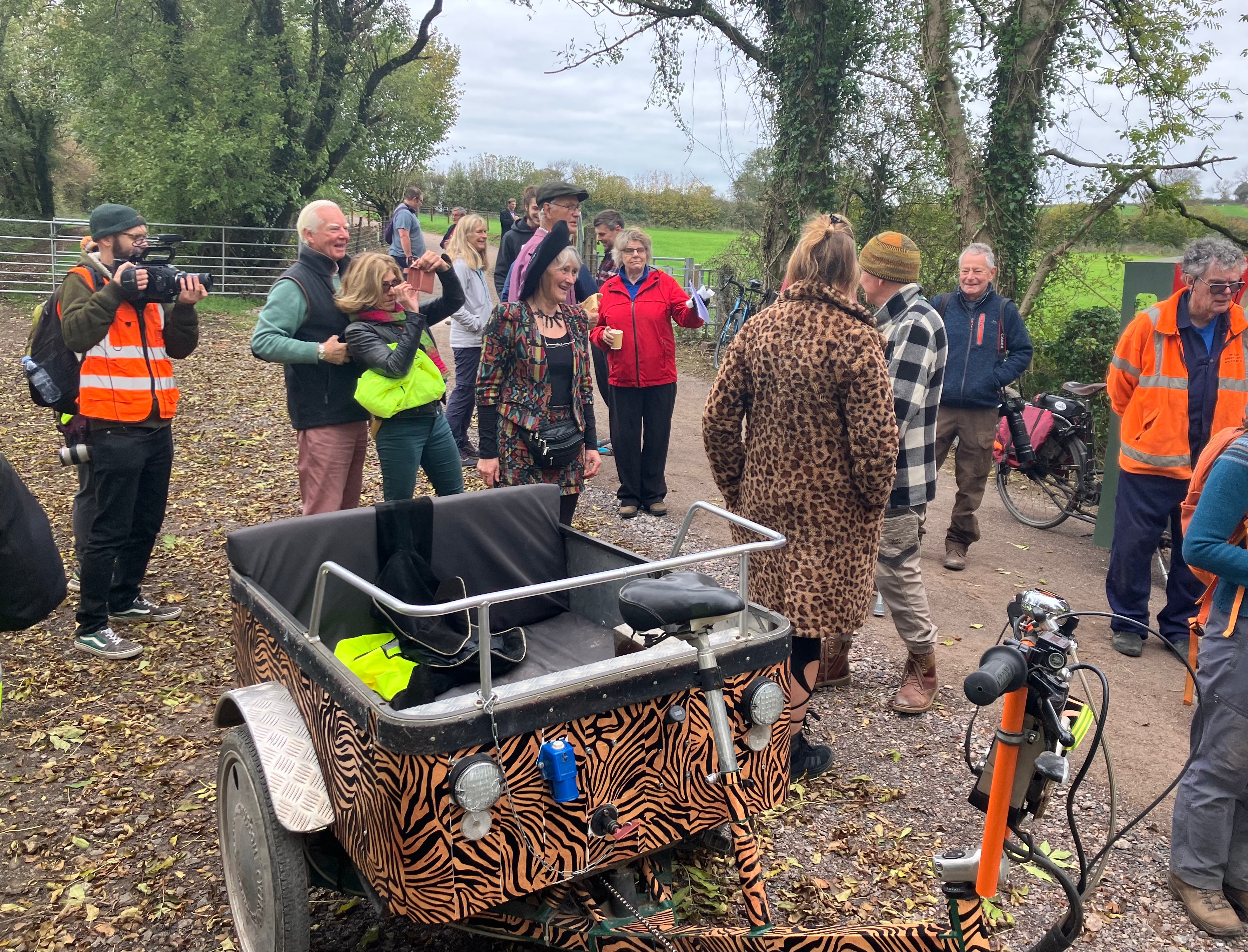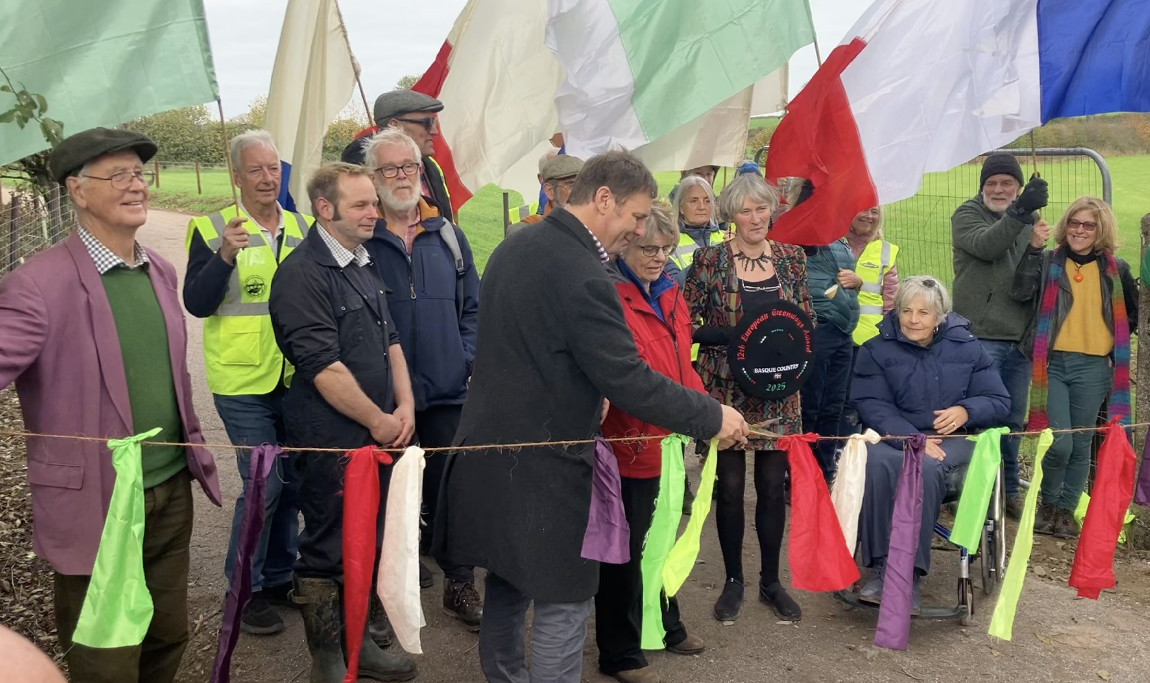 On 17th October 2025, the Thrupe Lane Link, Shepton Mallet, was opened by Councillor Ros Wyke and Christopher Somerville (representing the Dinder Estate landowner) in the presence of a large group of supporters, volunteers and key personnel. This vital section links the viaduct in Ham Wood (the subject of previous Greenways work camps) with Thrupe Lane and therefore the minor roads to the north towards Midsomer Norton, Radstock and Bath.