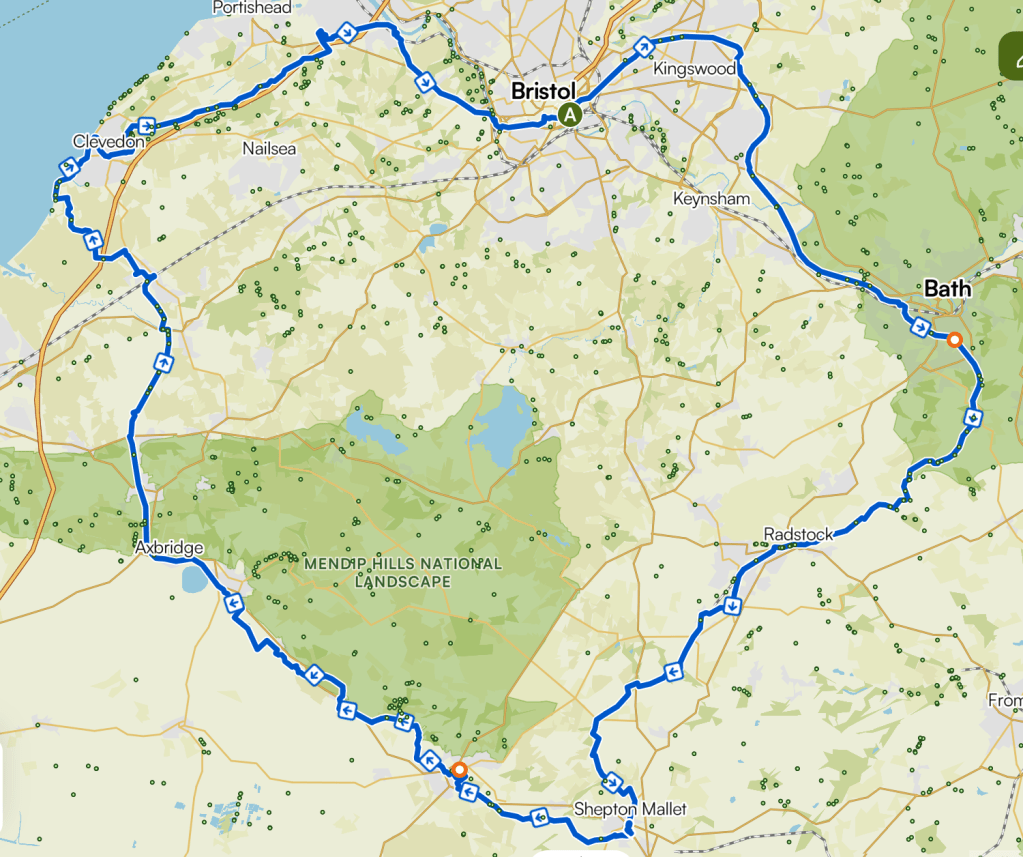 The aptly named Somerset Circle is an 88-mile, mostly traffic-free circuit linking Bristol, Bath, the Mendip Hills, the Somerset Levels and the coast. Over two-thirds (about 50 miles) of this potential route has already been completed and includes the Strawberry Line, Colliers Way, the Two Tunnels Greenway, the Bristol & Bath Railway Path, and the River Avon Trail.