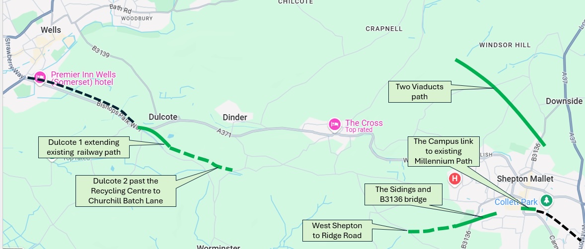 This is the full Strawberry Line route and its extension into Shepton Mallet. Click on the image to see the details on the volunteers’ dedicated website.