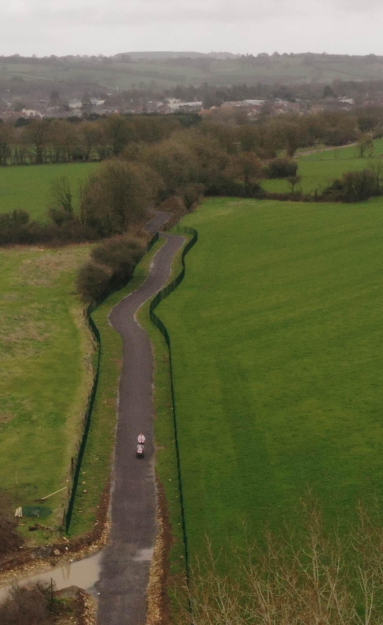 This 1km length of old railway linking the Shepton Mallet playing fields with Ridge Road was funded by Mendip District Council. It has been made possible with the support of the Duchy of Cornwall who owns the land. The 2022 Greenways Workcamp undertook the fencing and built much of the signature drystone wall. Local volunteers led by Steve Turner cleared the route and now manage it.